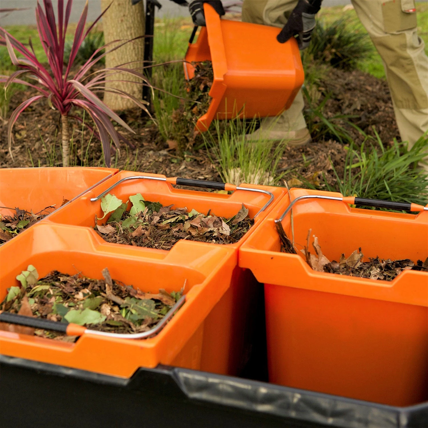 One 20 litre multipurpose scoop – made using the same premium 3mm polypropylene, with extra ribbing for strength as the matching buckets. At the front of the scoop is a moulded hand grip. Along the ‘mouth’ of the scroop is an integrated heavy duty aluminium blade for added strength – this also makes it easier if using a brush to sweep debris directly into the scoop. This scoop fits neatly into the front of the wheelbarrow, in front of the four buckets. Â