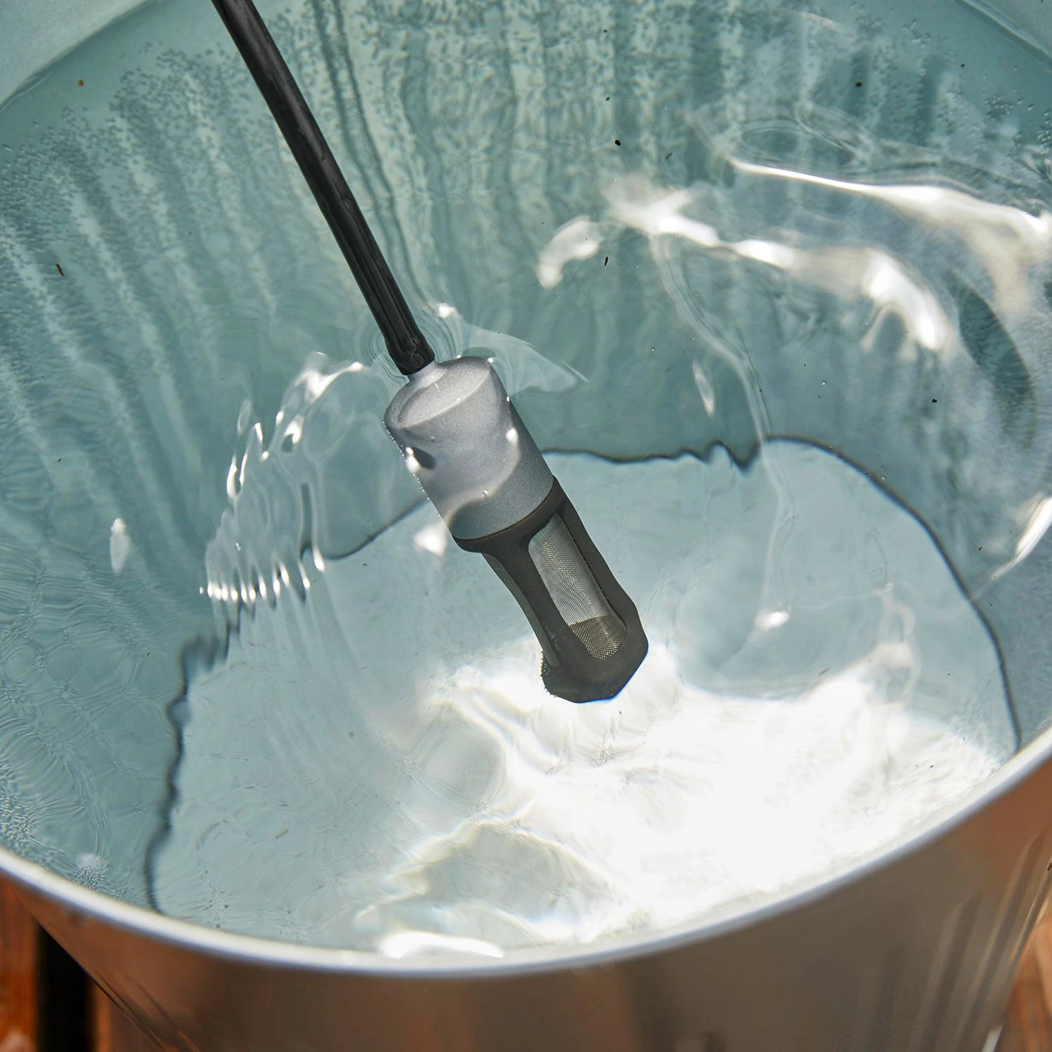 Filter – fitting to the end of the tube to prevent it from becoming blocked. It is this end of the tube, with filter attached, which should be dropped into your water reservoir. You can use any type of watertight container to act as your reservoir – from a bucket to a water butt, as long as the head of water is no greater than 4ft 11in / 1.5m.