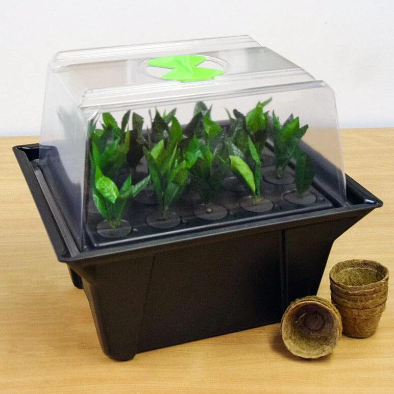The vent in the lid enables you to lower the humidity as the cuttings grow.
